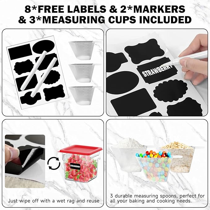 - 【INTIMATE ACCESSORY SET】: The stickers and markers included in the set can help you categorize your storage more effectively, while the measuring spoons make it easier to retrieve items from the commercial food storage containers with lids.