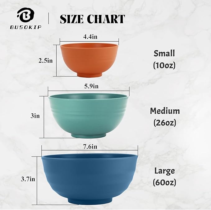 - 【Practical Small Bowls】 BUSOKIP 10 oz wheat straw bowls are perfect for dessert, snacks, fruits, ice cream and meal prep. It can be easily hold by one hand. Ideal size and texture for convenient usage.