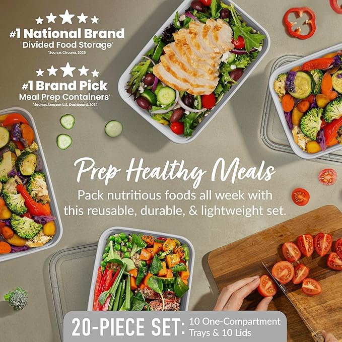 - What You Get: 10 one-compartment trays, 10 custom-fit lids, electronic meal prep book, and caring customer support.