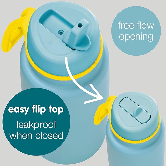 - KEEPS DRINKS COLD FOR 46 HOURS: With triple layer insulation and flip top lid, your drinks can stay cold for up to 46 hours. Our large 34 oz capacity water bottles ensure hydration throughout school, sports, and more!