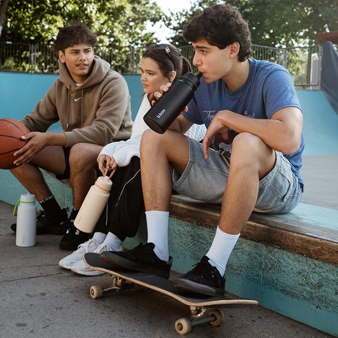 - B.BOX 1L / 34OZ INSULATED WATER BOTTLE: Featuring a flip top lid and removable stainless steel straw for easy flip and sip, free-flow drinking. The flexible carry handle makes it easy to bring along and stay hydrated wherever you go!