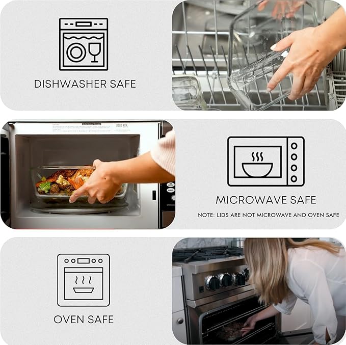 - 【Glass Storage Containers with Lids】Keep leftovers fresh, this reusable meal prep glass containers with lids goes straight from the refrigerator to the microwave or oven to the table (lid is not microwaveable). food can be cooked directly in the container using microwave or oven.