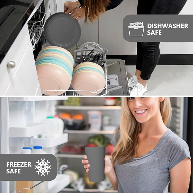 - Freezer & Dishwasher safe: Cleaning up is a breeze as these dinnerware are dishwasher safe. They are also used for store leftovers in the freezer. WARNING: NOT recommend for microwave.