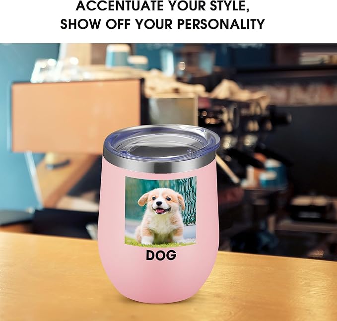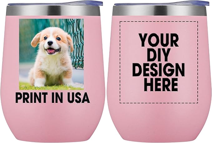 Personalized Custom Wine Tumbler Print in USA 12oz Stainless Steel Travel Coffee Cup with Lid & Straw Double Wall Insulated Mug with Colorful Text Logo Photo
