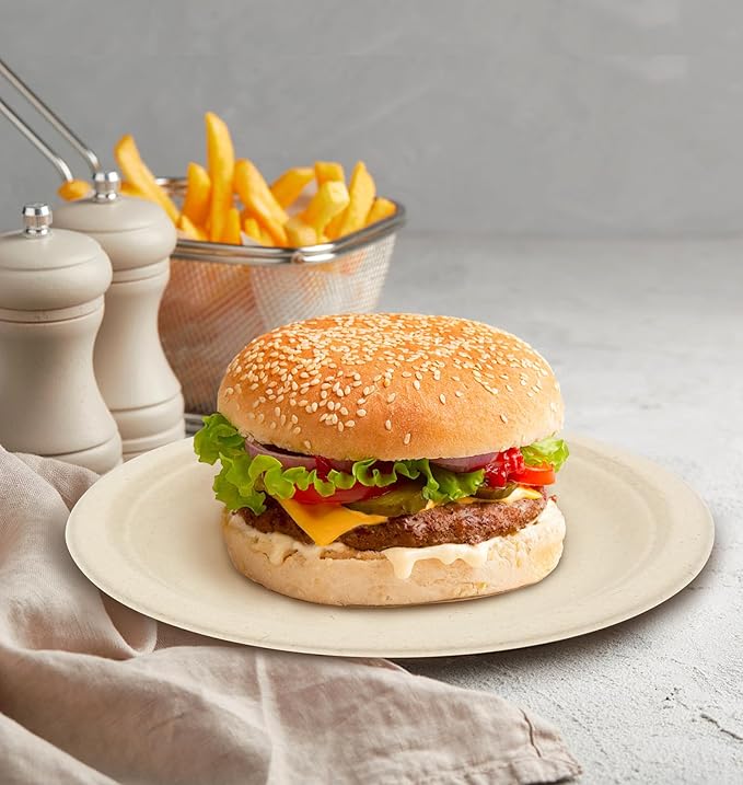 - ECO-FRIENDLY PAPER PLATE: Our disposable plates are made from recycled/repurposed sugarcane, which are 100% biodegrable for composting at easy disposal. Besides, no cutting the treesl, making such compostable plates are good for worldwide enviroment.