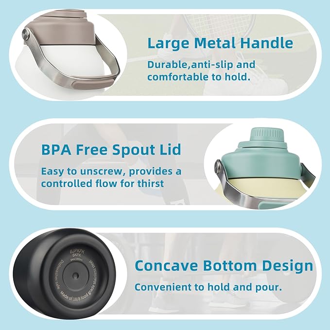 - LEAK PROOF & PORTABLE: Design with concave bottom, you can easily hold and pour water from this large water bottle. With a leak-proof silicone loop inside the spout lid, it prevents splashing and dripping. Has a durable anti-slip handle to enable you take it to anywhere