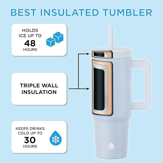 - ⭐ [ Includes tumbler. lid, 2 straws, and 1 cleaning brush ] The best for cold or iced water or iced coffee or iced tea. This 40oz tumbler with lid and straw makes drinking water a pleasure. Its the coldest water bottle with handle and straw there is. After lots of research and development we bring you the best 40oz tumbler, insulated reusable water bottle or mug you can buy.