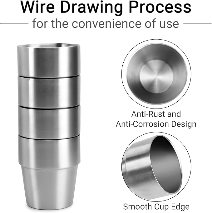 - 【A Better Alternative to Glass and Plastic Cups】Beasea stainless steel cups are made of 18/8 stainless steel which can better resist corrosion. Instead of fragile glass, our stainless steel cup won’t shatter or break if/when dropped on the floor. Not like plastic which tends to smell, these fairly light and handy cups will keep the drinks’ original flavor. The cup is polished inside and out, and the surface is smooth. Being made of high quality material, the cups are strong and sturdy.