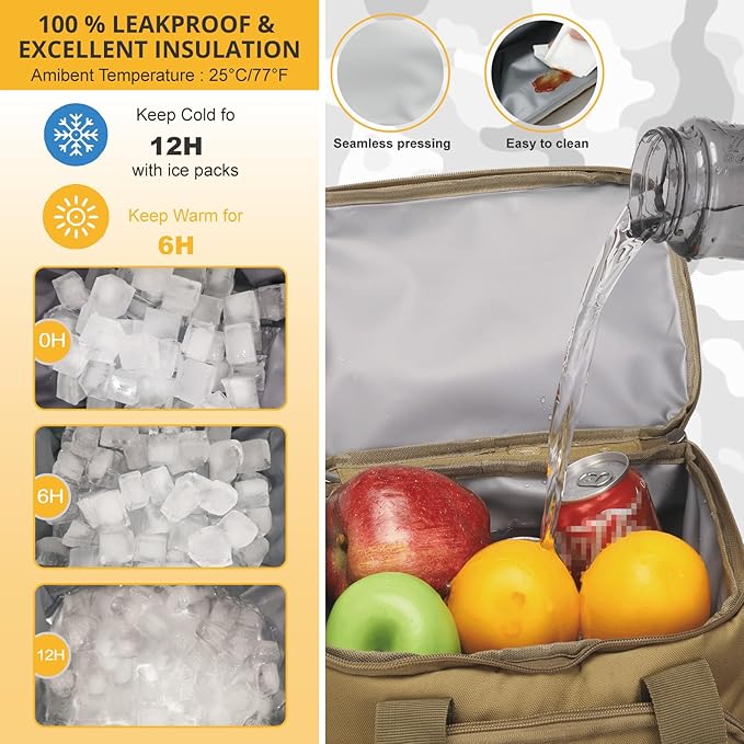 - Experience superior insulation performance with 10mm thick insulation foam and a food-grade aluminum liner, keeping your food cold, fresh, or warm for up to 8-12 hours. Ideal for various occasions including work, road trips, travel, beach outings, picnics, hiking, camping, and more.