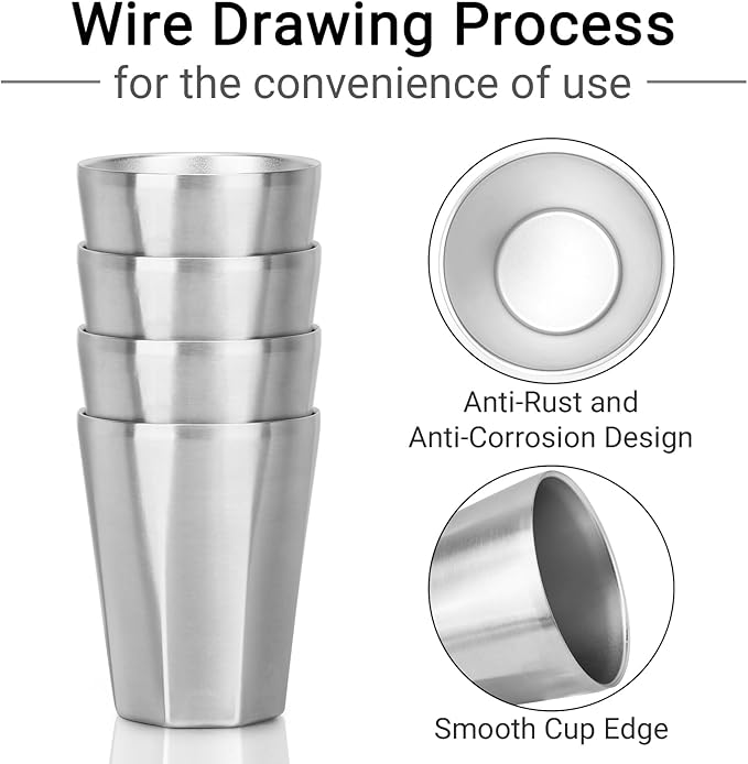 - 【A Better Alternative to Glass and Plastic Cups】Beasea stainless steel cups are made of 18/8 stainless steel which can better resist corrosion. Instead of fragile glass, our stainless steel cup won’t shatter or break if/when dropped on the floor. Not like plastic which tends to smell, these fairly light and handy cups will keep the drinks’ original flavor. The cup is polished inside and out, and the surface is smooth. Being made of high quality material, the cups are strong and sturdy.