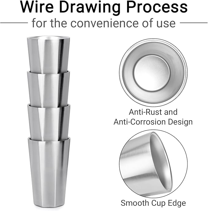 - 【A Better Alternative to Glass and Plastic Cups】Beasea stainless steel cups are made of 18/8 stainless steel which can better resist corrosion. Instead of fragile glass, our stainless steel cup won’t shatter or break if/when dropped on the floor. Not like plastic which tends to smell, these fairly light and handy cups will keep the drinks’ original flavor. The cup is polished inside and out, and the surface is smooth. Being made of high quality material, the cups are strong and sturdy.
