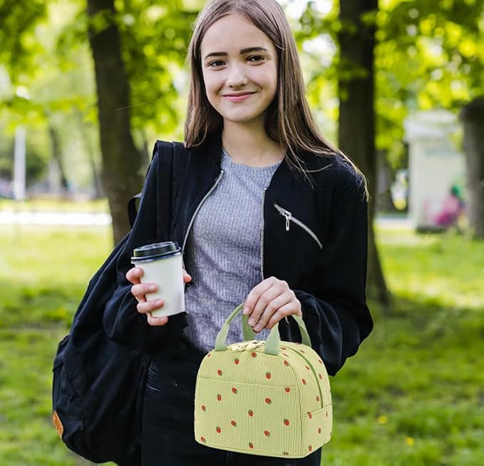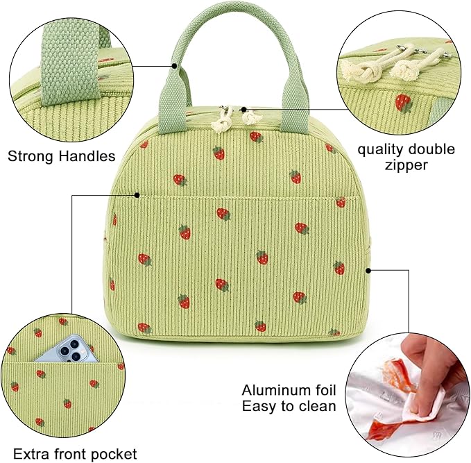 Bluboon Lunch Bag for Women Men Cute Corduroy Lunch Tote Bags Reusable Insulated Lunch Box Large Capacity Reusable Insulated Cooler for Work Picnic or Travel