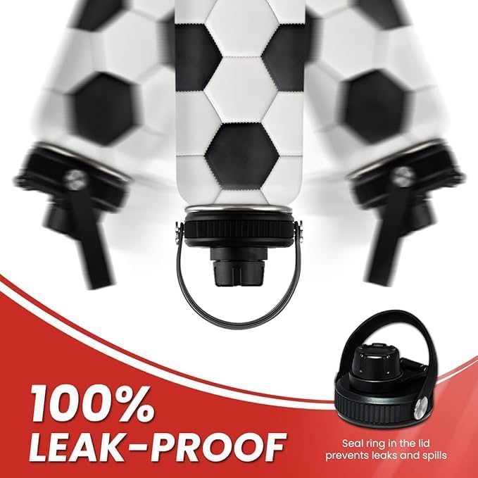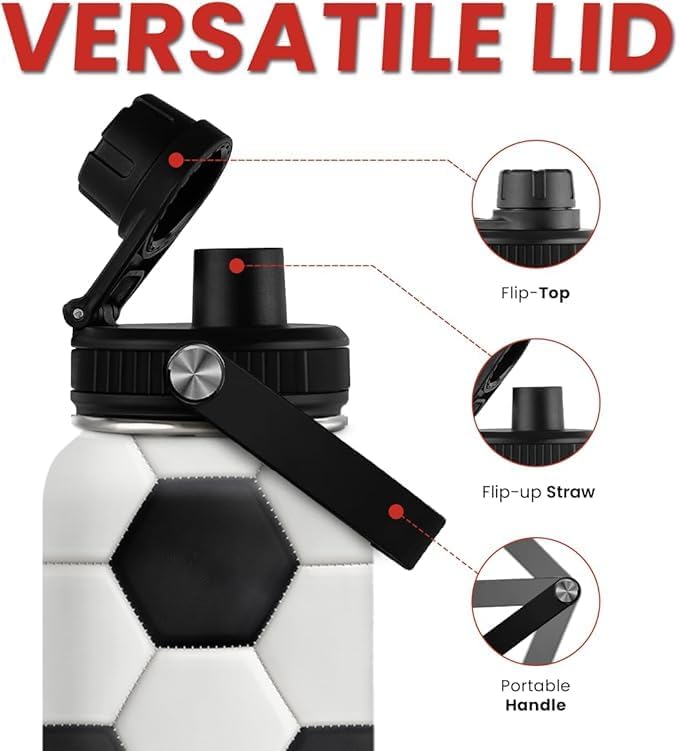 Soccer Water Bottle with Lid - 32oz Insulated Stainless Steel Sport Bottles - Gift for Men Soccer Player Fan Coach