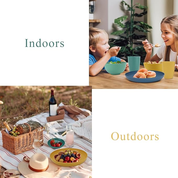 - ā¦ćššš§šØšš©šš”š ššØšššć- Suitable for all ages, these wheat straw dinnerware sets are perfect for various occasion, such as parties, picnics, camping, and everyday meals at home, school, office, or while traveling. Lightweight and unbreakable,they are ideal tableware for kids.