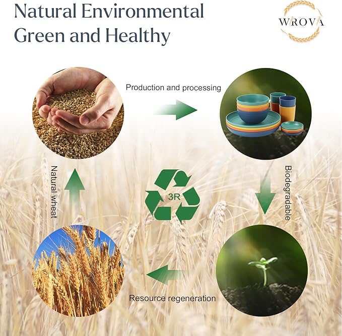 - ā¦ćš£š®š°šøš®š“š² šš»šš¶š±š²ć - Wrova 16pack wheat straw dinnerware sets contains 4pcs 10inches wheat straw plates with deep edge,4pcs 26oz wheat straw bowls,4pcs 12oz wheat straw cups,4pcs sauce plates. All of them are unbreakable,bpa and lead free,lightweight and easy to clean.