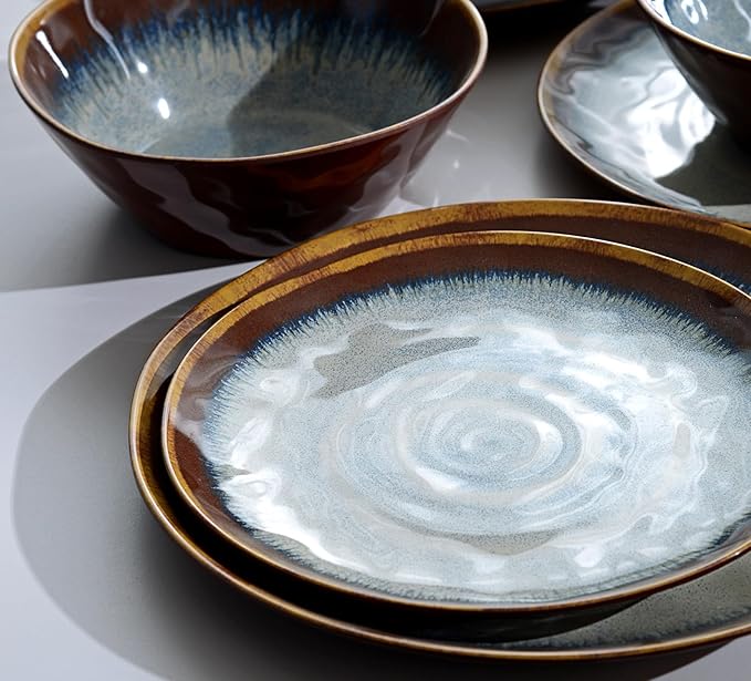 - Plates and Bowls Sets for 4 : The 12pcs dinnerware sets includes 4x7inch soup bowls, 4x8.75inch dessert plates, 4x10.75inch dinner plates.