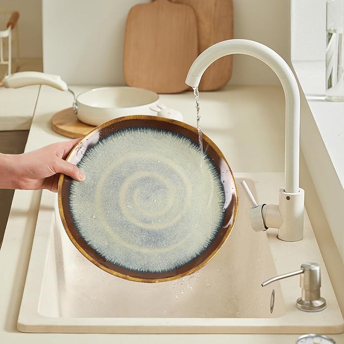- Stain Resistant & Easy to Clean: Melamine plates and bowls sets feature sleek finish easy to clean without odors or any color changing. Resists water, oil and rust stain conveniently for all householders. Support DISHWASHER,but Not for Microwave and Oven!