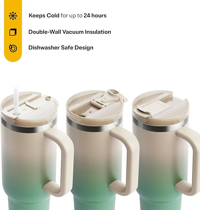 - VERSATILE 3-IN-1 LID: Sip or gulp with ease - this innovative insulated tumbler with lid and straw offers an open-mouth option, dual straws (included), and a secure spill and leak-resistant closure