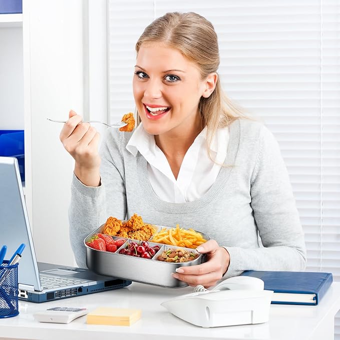 - SAFE & HEALTHY MATERIALS: This stainless steel lunch box is crafted with premium food-grade 18/8 stainless steel, which is BPA Free, Resistant to corrosion, reusable and long-lasting. Perfect for people who value both their health and the environment