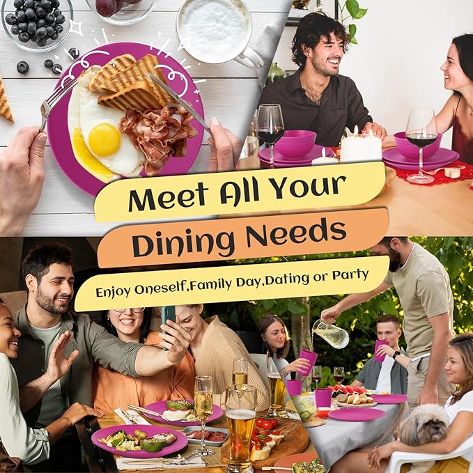 - SAFER & LIGHTWEIGHT & UNBREAKABLE: This unbreakable dinnerware service for 8 is perfect for families with kids and seniors. The shatterproof and antislip design is sturdy, yet lightweight which makes it perfect for indoor and outdoor use. The unique pattern design, with a non-slip and dynamic curve, provides an extra layer of safety while making your mealtime more enjoyable.