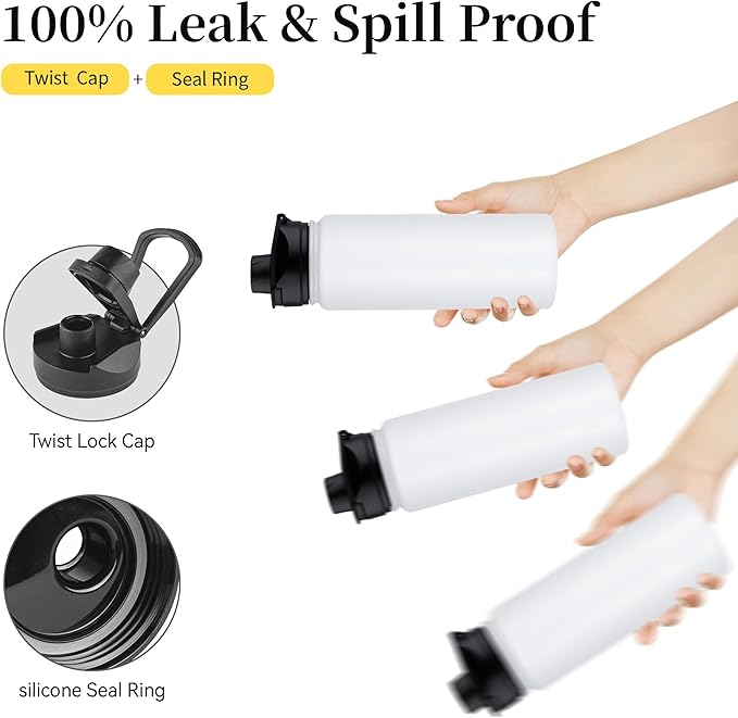 - 2 Lids: The stainless steel water bottles come with 2 leak proof handle lids (straw lid and wide mouth lid), safe and easy to carry