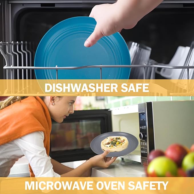 - Value Package: This wheat straw plastic plates set can be used by 4 people, and the plastic dishes set is a reliable choice for daily use and special occasions. The microwave plates and bowls sets includes 4 plates, 4 dessert plates, 4 cereal bowls, and 4 drinking cups.