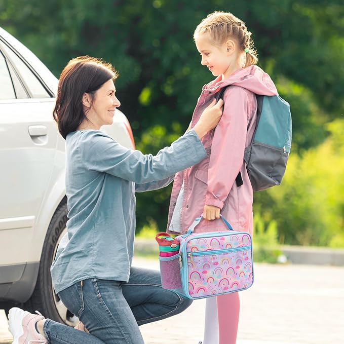Bagseri Lunch Bag for Girls - Kids Lunch Box Insulated Leak-Proof and Reusable Lunch Box for Girls Toddler Lunch Bag for Daycare and School, Pink Rainbow (Water Bottle Not Included)