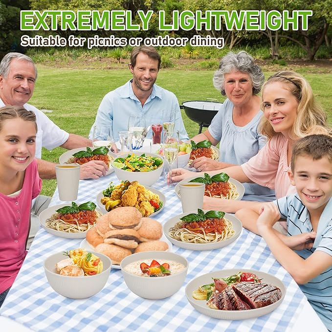 - 【Lightweight & Unbreakable】The wheat straw dinnerware set is lightweight & sturdy, as well as the plate holds a really good amount of food. Designed to last and built to be resistant to chipping or breaking.