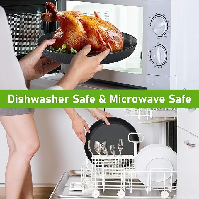- 【Microwave Safe】With the admirable heat-resisting ability, these unbreakable dinnerware sets are safe to use in the microwave and dishwasher. But you'd better control the highest temperature within 120℃ (middle fire) and usage time within 3 minutes.