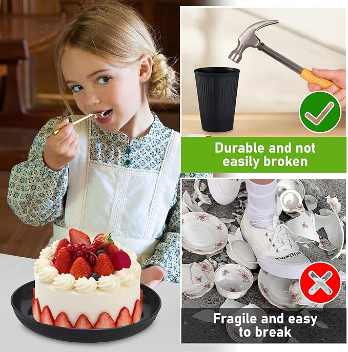 - 【Space Saving】Designed with space-saving style and smooth round edges. Compactly without taking up a lot of space in your kitchen cabinet and plate shelf. Super sturdy and durable, unbreakable material even if they are dropped!