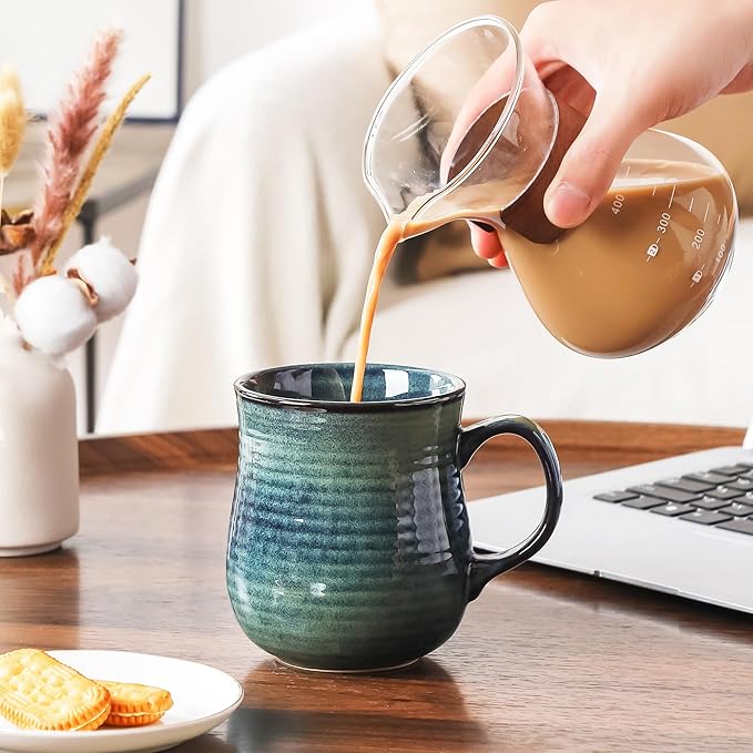 21 oz Large Ceramic Coffee Mugs, Pottery Mug Handmade, Ceramic Tea Cups with Handle for Office and Home, Dishwasher and Microwave Safe (Green)