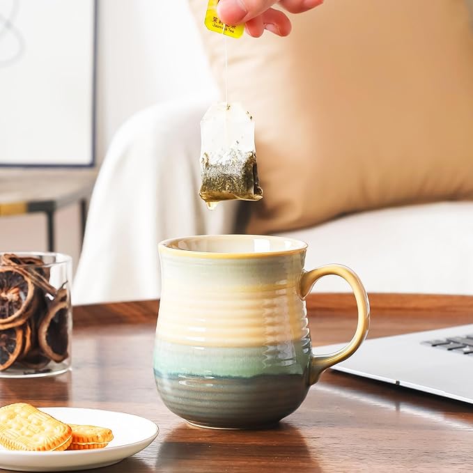 - UNIQUE GLAZE: The handmade pottery mug is unique due to its special reactive glaze technology. The stylish stripes and attractive appearance will surprise you when you receive it. Each mug has its own individual details. The smooth and high quality glaze makes it very easy to clean