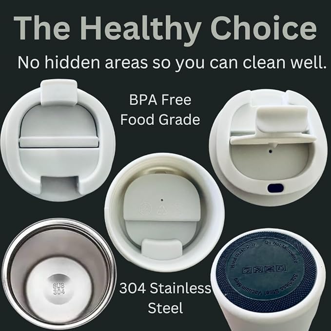 - High-quality Material- The body of this travel coffee mug is made of 304 Stainless Steel, sturdy and safe, rust resistant. These travel mug spill proof can serve you for a very long time.