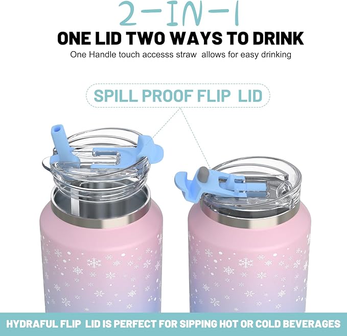 - Innovative 2-in-1 Lid Structure: Experience the best of both worlds with our lid that seamlessly integrates a sipping spout and a flip-top. Adapt to your beverage of choice – sip leisurely or flip open for a satisfying gulp. Versatility meets practicality. 100% leak proof and spill -resistant.