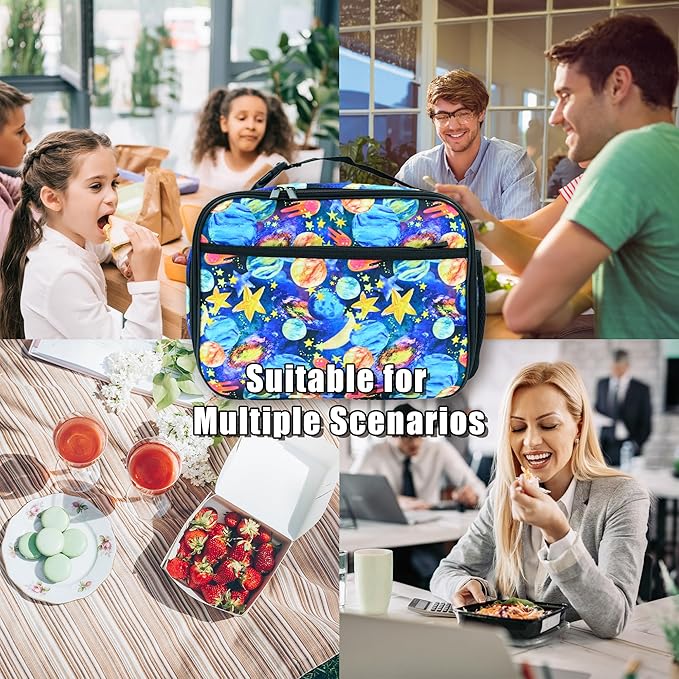 Planet Star Moon Lunch Box Insulated Reusable Lunch Bag Tote Cooler for Women Men Boy Girl School Work Office Picnic