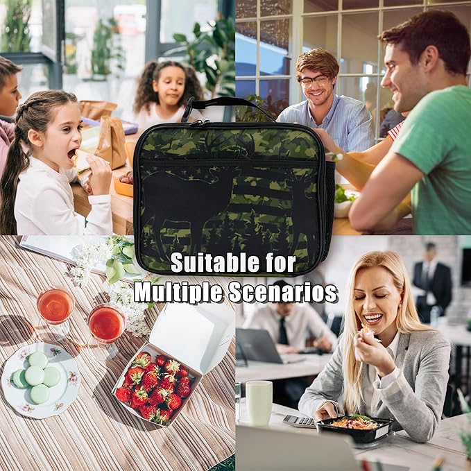 Camo Flag Deer Lunch Box Insulated Reusable Lunch Bag Tote Cooler for Women Men Boy Girl School Work Office Picnic