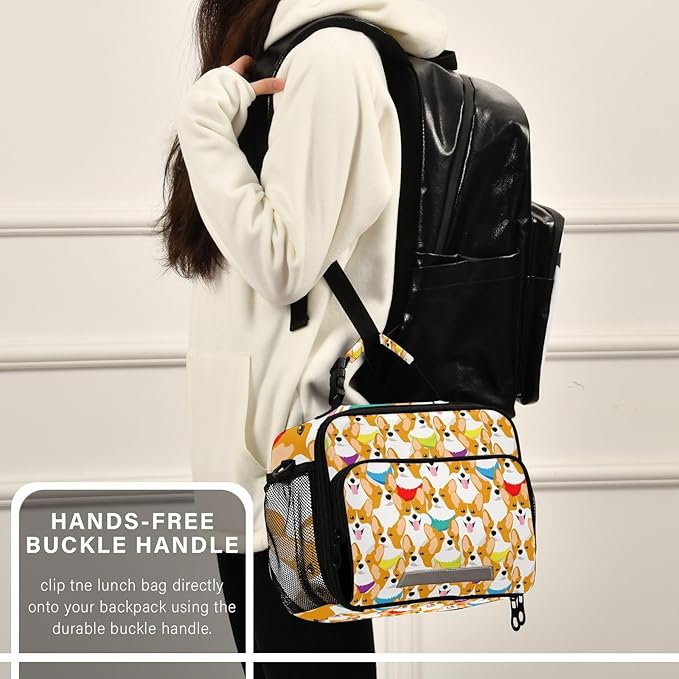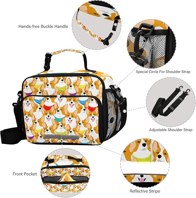 ALAZA Corgi Kids Lunch Box, Dogs Lunchbox Insulated Reusable Meal Container Lunch Bag with Shoulder Strap for School Girls Boys