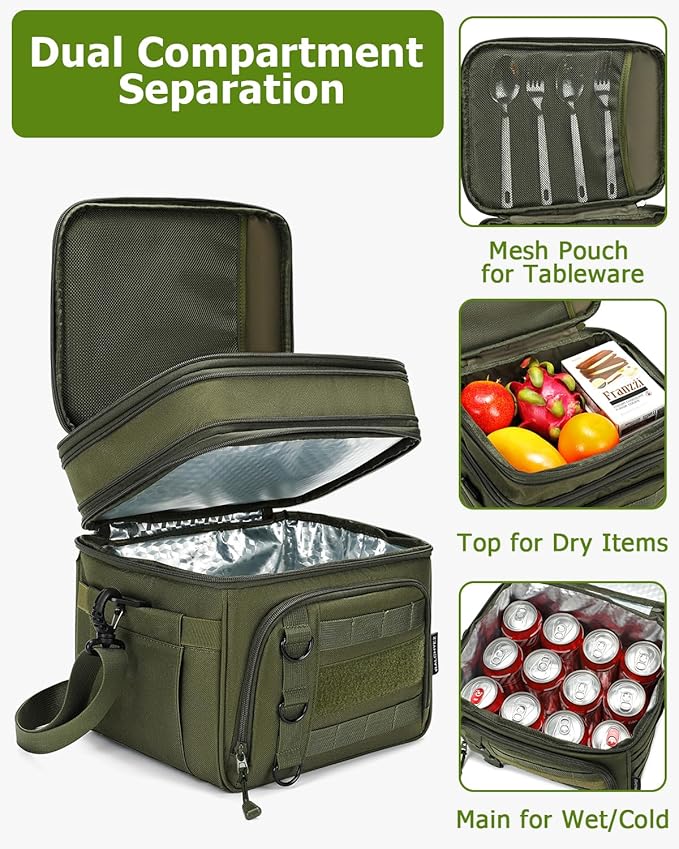 RalChyez Tactical Lunch Box for Men, Large Insulated Lunch Bag Expandable Double Deck Cooler Leakproof Waterproof Lunch Pail for Adult Women Work Office Shifts Picnic Travel Green