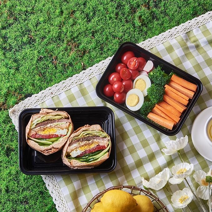 50 Pack Meal Prep Plastic Food Storage Containers With Lids 28 oz 1 Compartment Black Rectangular To Go Lunch Prepping Boxes BPA-Free Microwavable Freezer Safe Stackable (Formerly FULING)