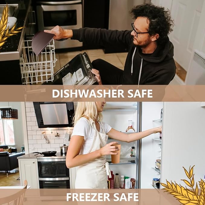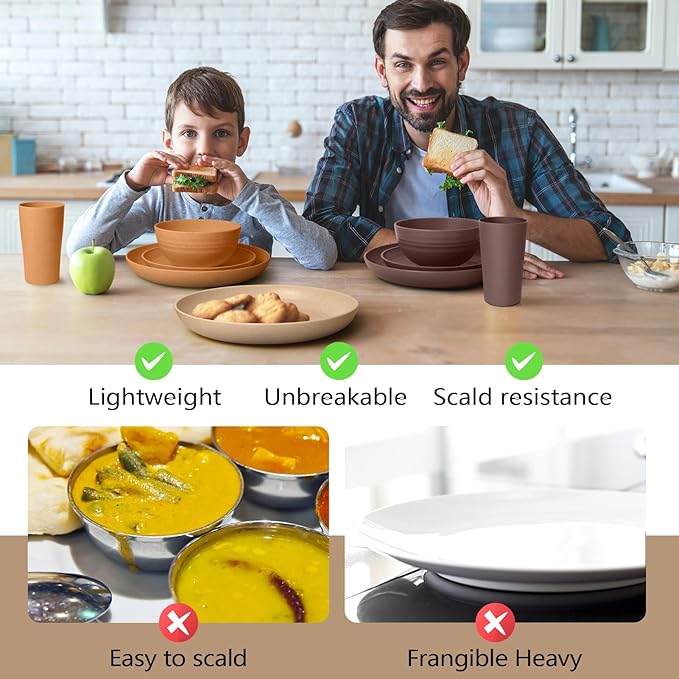 - MATERIAL: Made of wheat straw and plastic material. 100% BPA free. Sturdy, will not break or chip like porcelain or ceramic.