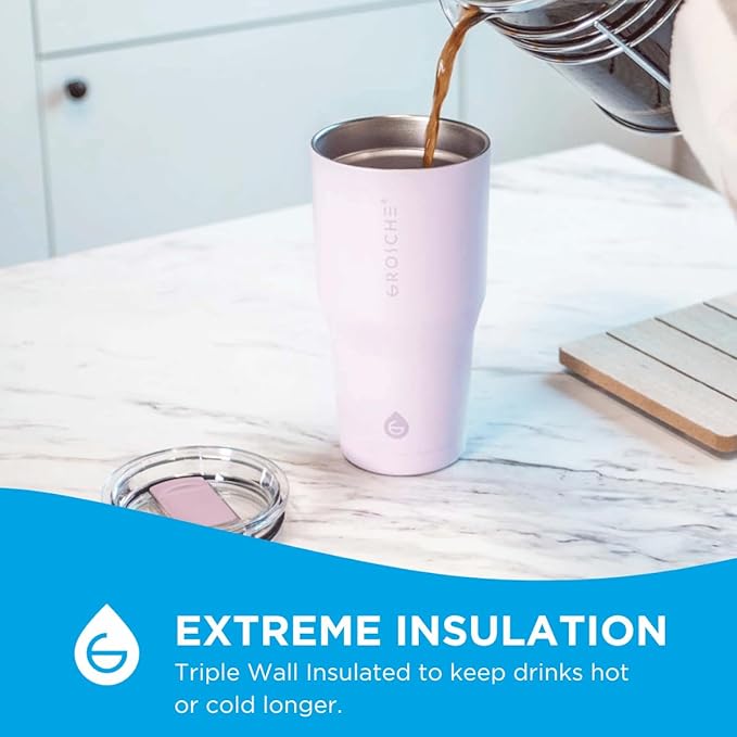 GROSCHE Yukon 20 oz Insulated Coffee Mug with Lid - Durable Travel Mug, Stainless Steel Tumblers, Vacuum Insulated Coffee Tumbler for Hot or Cold Beverages - LAVENDER