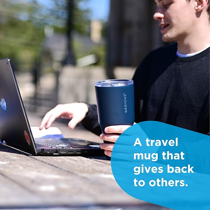 GROSCHE Yukon 30 oz Insulated Coffee Mug with Lid - Durable Travel Mug, Stainless Steel Tumblers, Vacuum Insulated Coffee Tumbler for Hot or Cold Beverages - BLUE