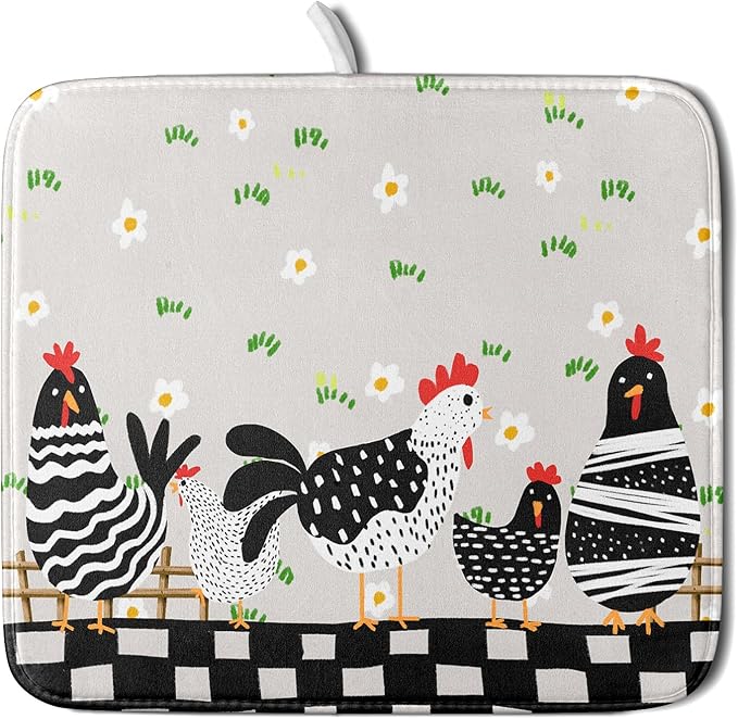 - 【Protect Tableware】Place your dishes on it or under dish racks, the farm cock dish mat prevents bowls, glassware, and more tablewares from being scratched or worn, can be used as dish drying mat, sink mat, dishes drainer mats to keep the countertop dry and tidy.