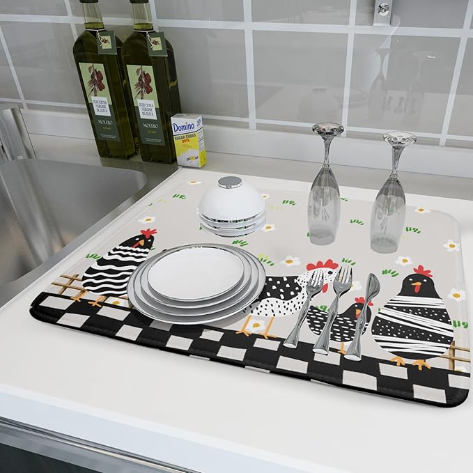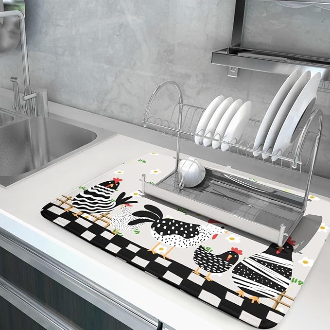 - 【Protect Tableware】Place your dishes on it or under dish racks, the farm cock dish mat prevents bowls, glassware, and more tablewares from being scratched or worn, can be used as dish drying mat, sink mat, dishes drainer mats to keep the countertop dry and tidy.