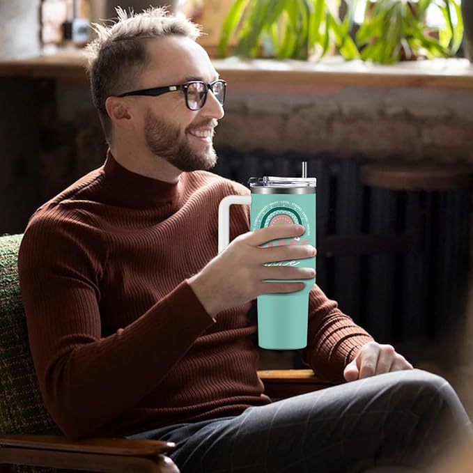 - 🌟【With Lid and Straw】40 oz stainless steel cup with 1 unbreakable straight steel straw and 1 bent steel straw, 1 free straw brush and 1 splash-proof sliding cover.
