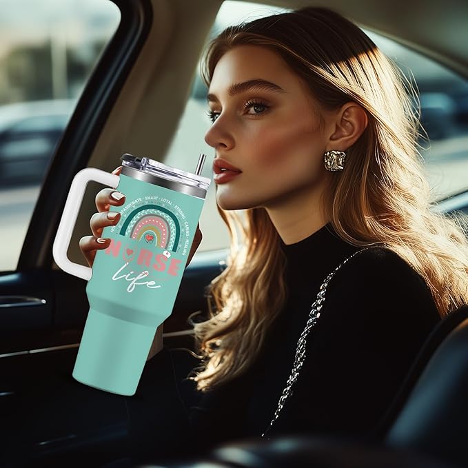 Nurse Gifts for Women 40Oz Nurse Cups Tumbler with Handle, Nurses Coffee Travel Mugs, Nurses Week Appreciation Gifts Nursing School Graduation Gift