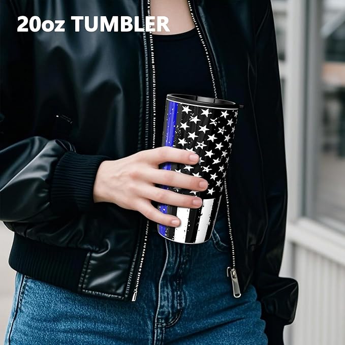 TILUCK 20 oz Tumbler with Leak-Proof Lid, Vacuum Insulated Stainless Steel Coffee Mug, Double-Walled Travel Tumbler for Hot and Cold Drinks(BlackFlag, 20oz)