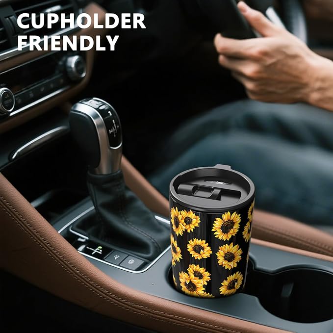 TILUCK 20 oz Tumbler with Leak-Proof Lid, Vacuum Insulated Stainless Steel Coffee Mug, Double-Walled Travel Tumbler for Hot and Cold Drinks(SunFlower, 20oz)