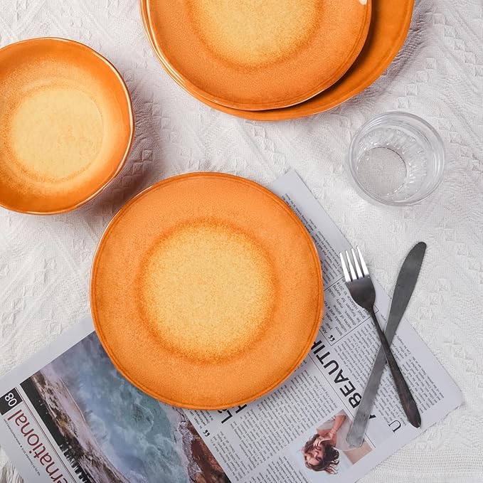 - ✔ Design of Kitchen Dinnerware Sets: MissYip's tableware set is colorful and artistic, both vintage and fashionable. The bright colors and ruffled edge design of this tableware can make your dining table more youthful and energetic not only convenient to use, but also to decorate your dining table and kitchen.