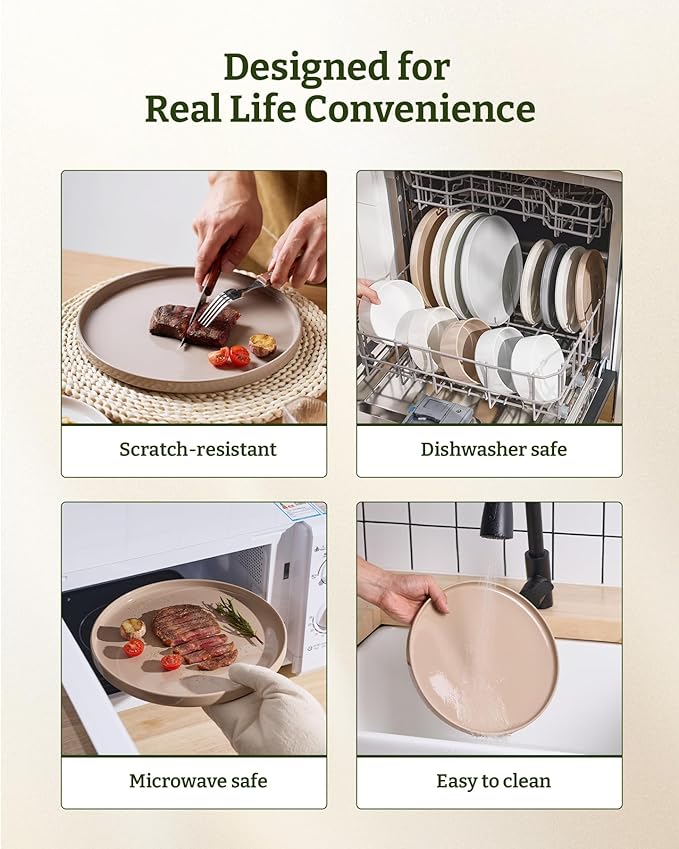 - DISHWASHER AND MICROWAVE SAFE: Famiware dishware sets are made of sturdy stoneware. Each plate and bowl is dishwasher safe and microwave safe.